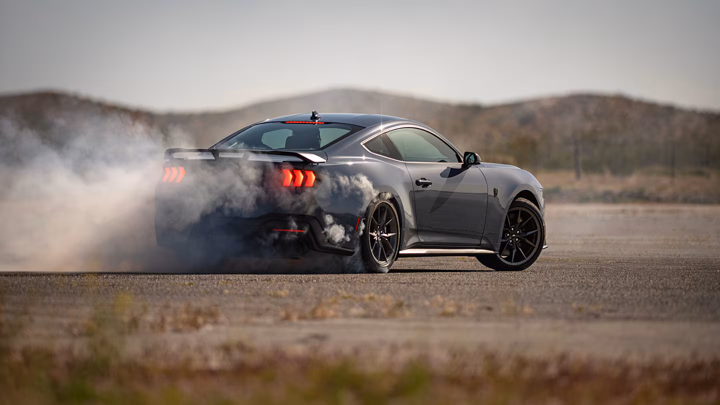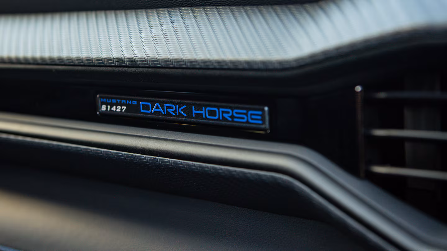 El Dark Horse es la versión más extrema con mayor potencia, frenos Brembo, diferencial Torsen y aerodinámica mejorada.