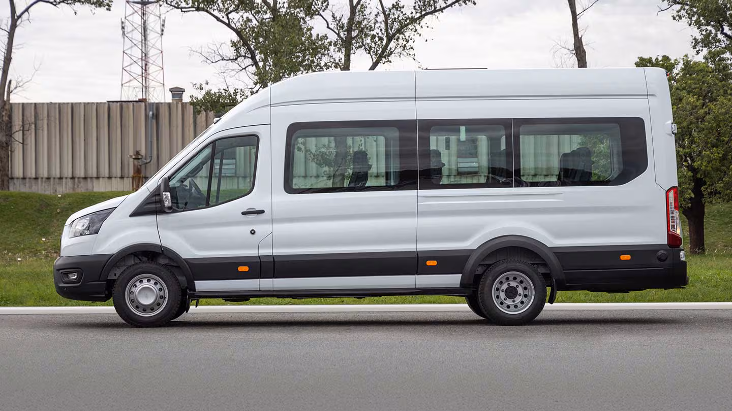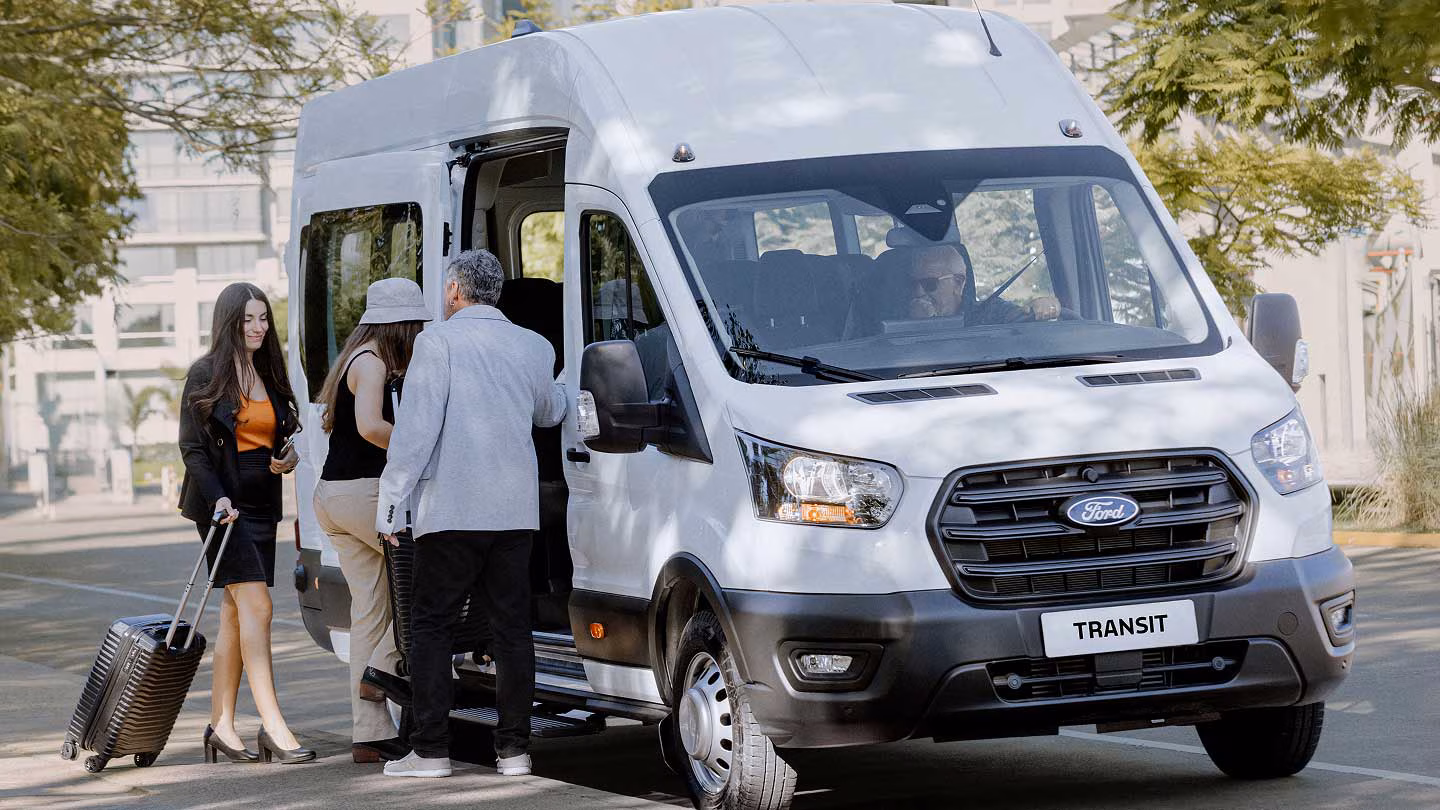 La Ford Transit Minibus tiene capacidad para hasta 15 pasajeros, siendo ideal para servicios de transporte escolar, turismo, traslados de personal y aplicaciones de movilidad urbana.